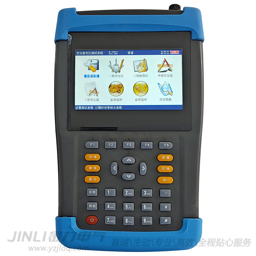 JL3010S手持式變比測試儀(手持式普通款)內置大容量鋰離子充電電池,無需外接電源即可進行測試,現場方便易用。儀器采用大屏幕真彩色液晶做為顯示器,全中文圖形化操作界面并配有漢字提示信息、多參量顯示的液晶顯示界面,人機對話界面友好,向量圖顯示及接線判斷為檢查電路的正確性提供了可靠的依據。全觸摸式導電硅膠鍵盤操作方式,操作手感好,簡便易用。