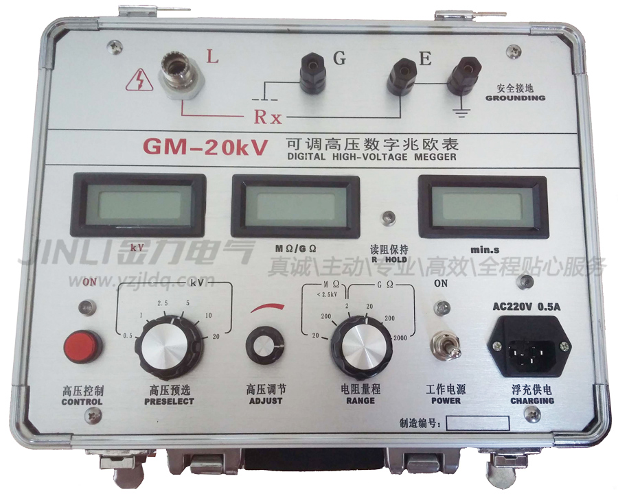 GM-20kV | 0.5、1、2.5、5、10、20kV | ±(5%+10V) | >10mA | 0.01 MΩ~1999GΩ |