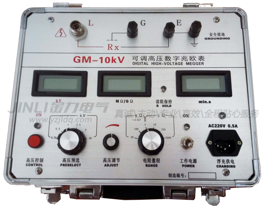 GM系列可調(diào)高壓數(shù)字兆歐表是我公司為解決高壓變電站、發(fā)電廠現(xiàn)場(chǎng)強(qiáng)干擾下對(duì)大型高壓變壓器、電機(jī)電器、遠(yuǎn)程電力電纜或埋設(shè)電纜等電氣絕緣電阻特性的測(cè)試而設(shè)計(jì)研制。它亦可用于廣泛領(lǐng)域的電氣絕緣電阻特性測(cè)量。