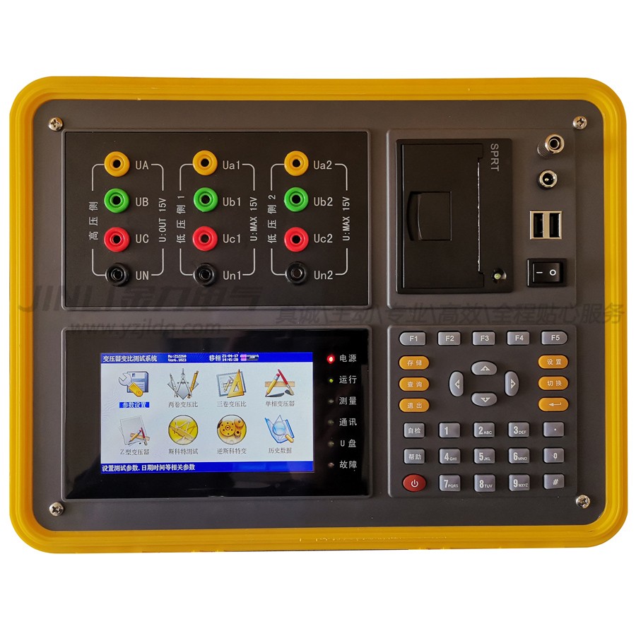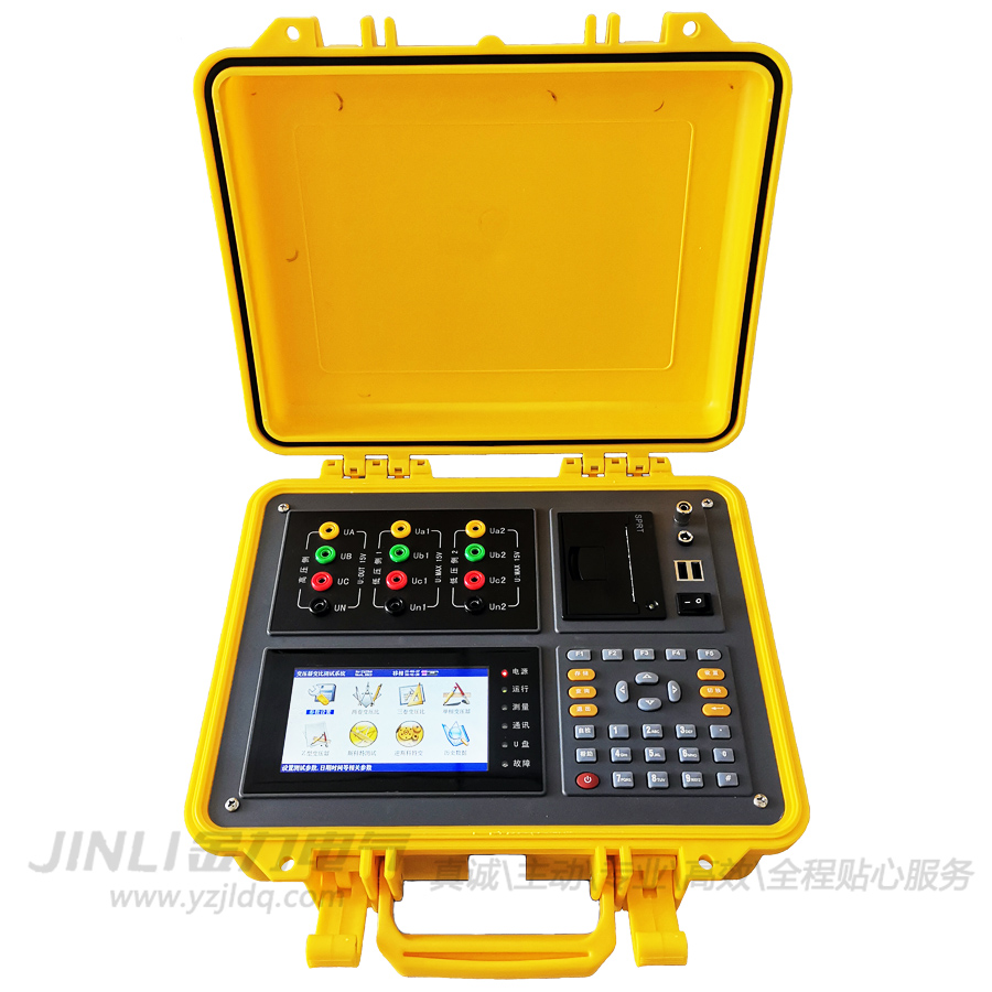 根據IEC及國家有關標準規定,在電力變壓器生產、用戶交接和檢修試驗過程中,變壓器變比試驗是必做的項目。這樣可有效監督變壓器產品出廠及使用過程中的質量,防止變壓器匝間短路,開路,連接錯誤,調壓開關內部故障或接觸故障。我公司自主開發、研制生產的JL3010F多功能全自動變比測試儀(三卷變)除具有完全根據用戶的現場使用要求,操作簡便,功能完備,數據穩定可靠的特點外還是國內到目前為止第1款可以進行全盲測(不知道被測變壓器的任何參數的情況下準確測量變比值和組號,同時能準確測量相角)的變比測試儀;具備兩套低壓繞組測量電路,可同時測量三卷變的高壓/中壓、高壓/低壓變比值和夾角(對于三卷變一次接線即可完成對各繞組間各分接檔位變比的測試,工作效率大大的提高);能適應各種大中小型變壓器變比測試的需要(包括Z型變、整流變、電爐變、非整點的移相變、平衡變、斯科特及逆斯科特變壓器),是國內變比測試中技術非常先進,測試項目非常完善,測量參數全面的變比測試儀。