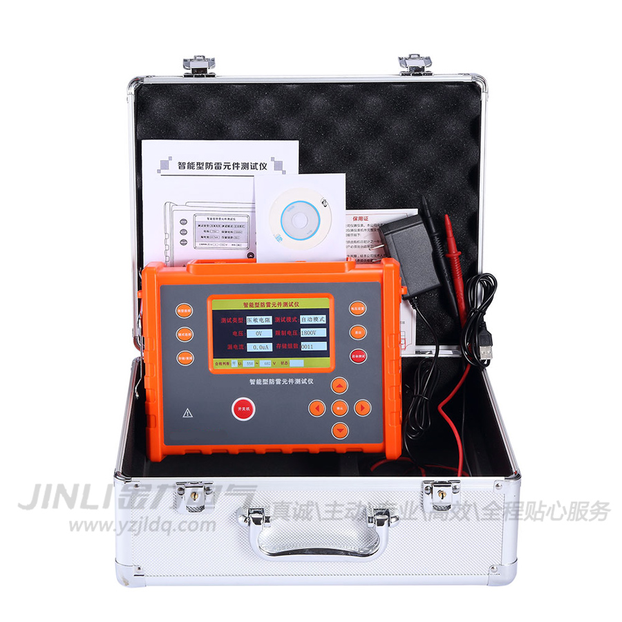 JL8007智能型防雷元件測試儀又名防雷元件測試儀、SPD現場測試儀,用于避雷器、防雷器、浪涌保護器、壓敏電阻、金屬陶瓷放電管、直空避雷管等性能測試的儀表。本儀表采用充電功能離線使用克服了傳統產品要插電使用不方便現場操作的缺點、電壓輸出2000V應用范圍更加廣泛、使用高壓短路保護、自動放電功能、儀表可靠耐用。同時具備絕緣電阻測試功能、采用豪華大彩屏幕顯示、數據存儲、數據查閱、合格判斷、自動關機、USB數據上傳等功能。整機美觀,量程寬廣,分辨率高,操作便捷,攜帶方便,準確、可靠、性能穩定,抗干擾能力強。