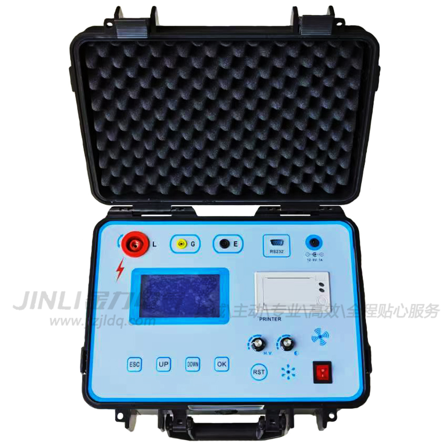 JL9001水內冷發電機絕緣電阻測試儀、輸出電流大于20mA,輸出電壓有2500V、5000V兩種可選。儀器內含高精度微電流測量系統、數字升壓系統。只需要用一條高壓線和一條信號線連接試品即可測量。測量自動進行,結果由大屏幕液晶顯示,并可以將結果進行存儲。