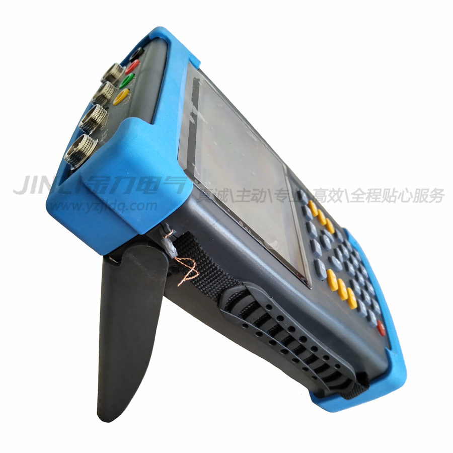 本機操作時中可以打開后部的支架放在桌面使用,亦可手持操作使用。為方便手持操作,本機可增加固定手持操作的緊固帶。手持操作時可以將手固定在儀器的左側,保證了手持操作的方便靈活。