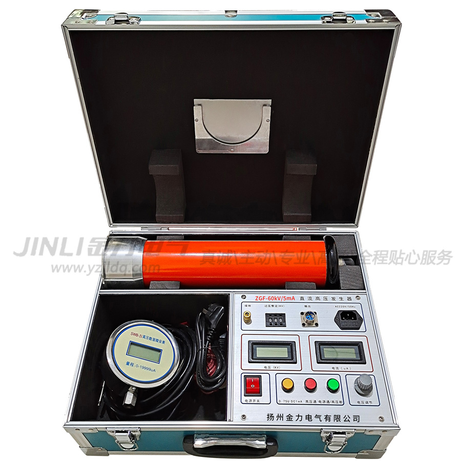 ZGF-60kV/5mA直流高壓發(fā)生器(一體機(jī))是按照中國(guó)行業(yè)標(biāo)準(zhǔn)ZBF 24003-90《便攜式直流高壓發(fā)生器通用技術(shù)條件》的要求,研究、制造的便攜式直流高壓發(fā)生器,適用于電力部門、廠礦企業(yè)動(dòng)力部門、科研單位、鐵路、化工、發(fā)電廠等對(duì)氧化鋅避雷器、磁吹避雷器、電力電纜、發(fā)電機(jī)、變壓器、開關(guān)等設(shè)備的直流高壓試驗(yàn)。